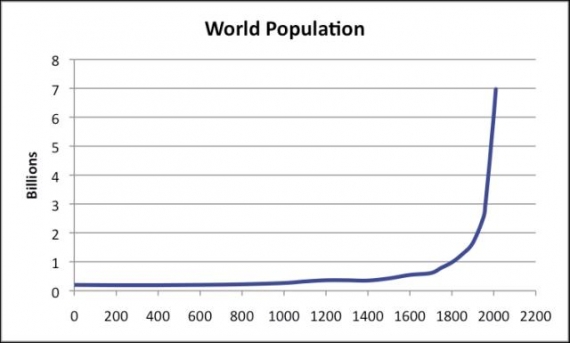 Ludzka populacja rośnie – szczególnie gwałtownie od początku XIX w, kiedy zaczęliśmy masowo wykorzystywać paliwa kopalne.