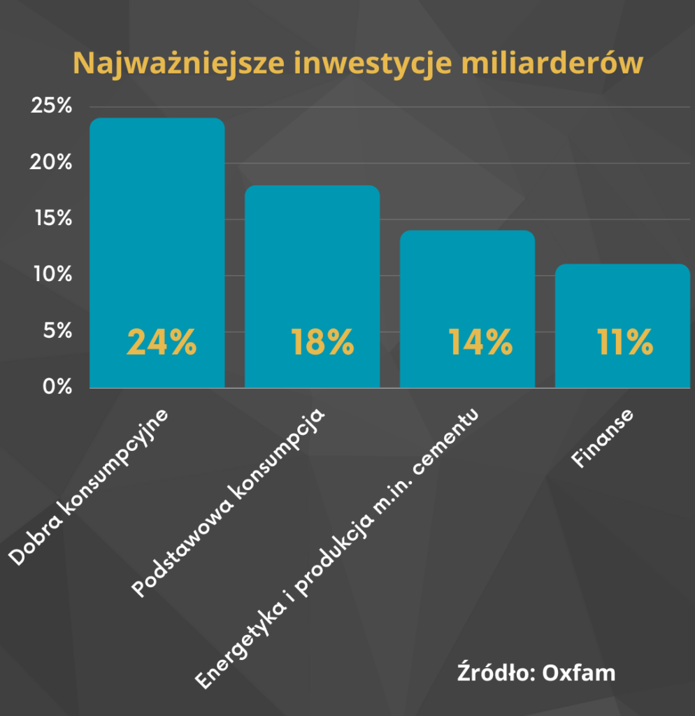 Jednak emisje najbogatszych wiążą się nie tylko z luksusowym stylem życia, lecz również z inwestycjami. I to właśnie temu elementowi przyjrzał się Oxfam, brytyjska organizacja charytatywna walcząca z ubóstwem.