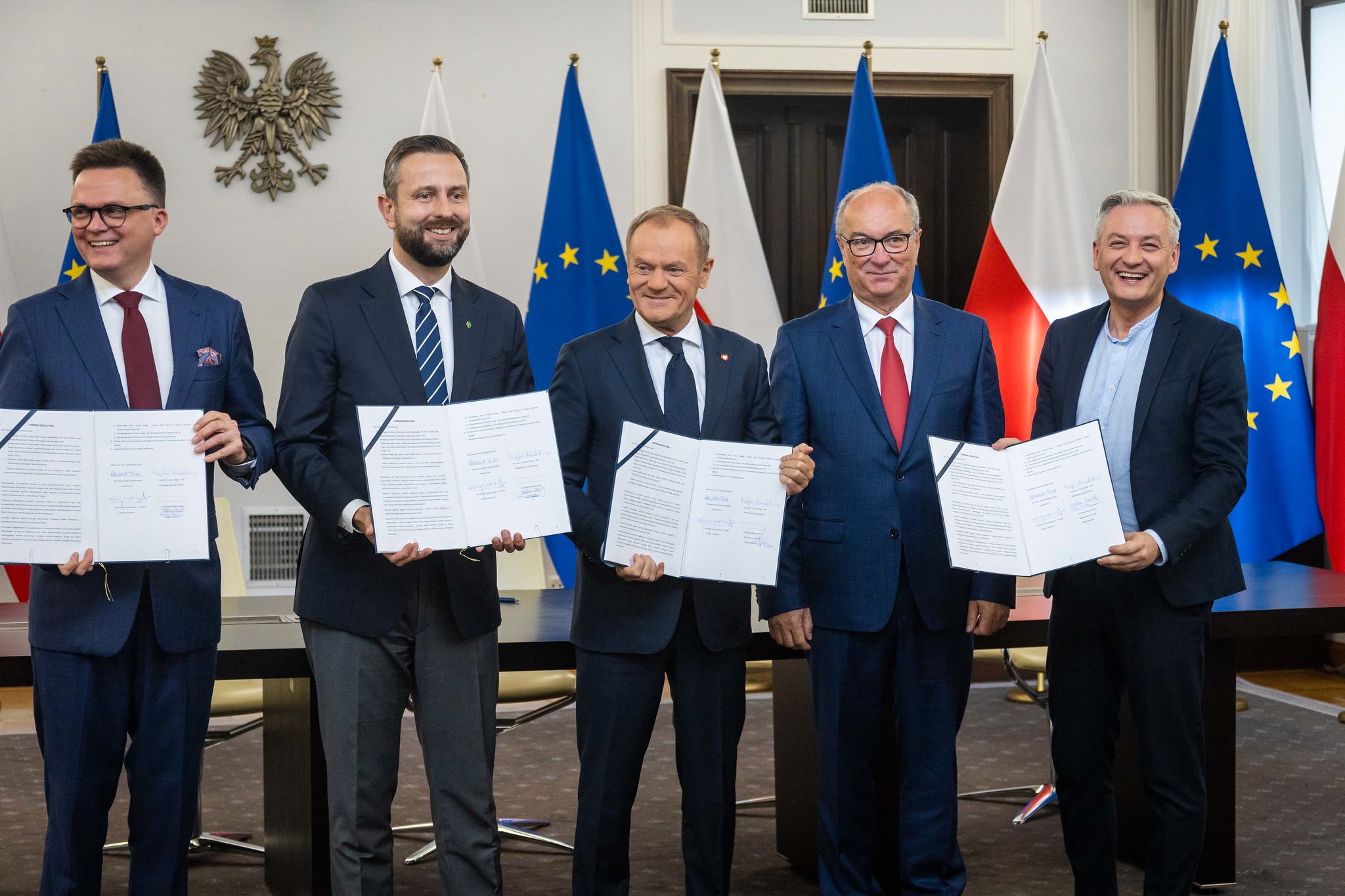 Koalicjanci zapisali też w umowie, że stworzą „stabilne prawo wspomagające sprawiedliwą transformację energetyczną”. W tym celu miały powstać systemy wspomagania finansowego i technologicznego. „Bez czystej i taniej energii Polsce grozi zapaść konkurencyjna względem innych państw, co odbije się negatywnie na jakości życia i dochodach Polaków” – podkreślili politycy współtworzący rząd.