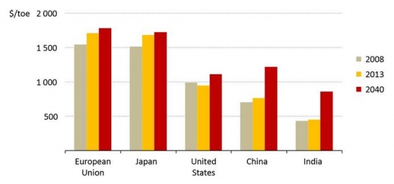 Scenariusz dalszego wzrostu zużycia surowców energetycznych przewiduje dla Europy znaczny wzrost cen paliw, ponieważ – według prognozy – produkcja gazu w Europie spadnie. Kontynuacja wydobycia doprowadzi do zmniejszenia zasobów i do sytuacji, w której w roku 2040 ceny paliw w Europie będą należały do najwyższych na świecie.