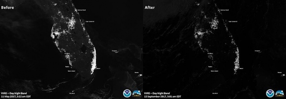 Rys.2: Floryda nocą, przed i po uderzeniu huraganu Irma.