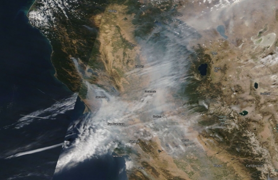 Rys.3: Smugi dymów z pożarów lasów i zarośli w północnej