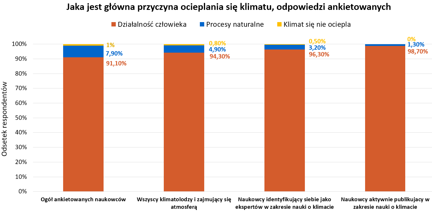 Informacja o 97% konsensusie naukowym w kwestii antropogeniczności zmiany klimatu wśród ekspertów zajmujących się nauką o klimacie jest zresztą całkiem szeroko rozpowszechniona w świadomości społecznej.