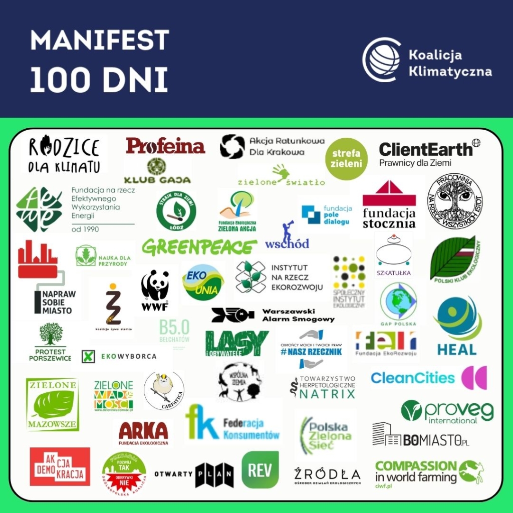 „Środowisko przyrodnicze i klimat są dobrami publicznymi. Od ochrony rodzimej przyrody i powstrzymania kryzysu klimatycznego zależy bezpieczeństwo nas wszystkich – nie tylko żyjących obecnie, ale także tych, którzy przyjdą po nas” – tymi słowami rozpoczyna się „Manifest 100 dni”, który podpisało 60 organizacji klimatycznych, ekologicznych i społecznych.