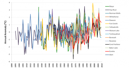 nie będą to „temperatury w Arktyce”, bo są to stacje z północnej Kanady, ale