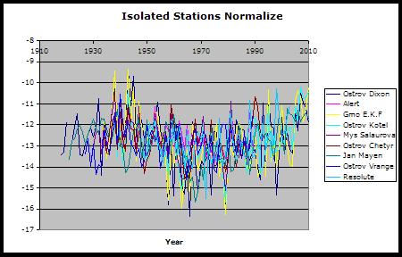 Ale nawet, jeśli zaakceptujemy wybrane przez Caryla „izolowane”  stacje jako reprezentatywne dla Arktyki, to co