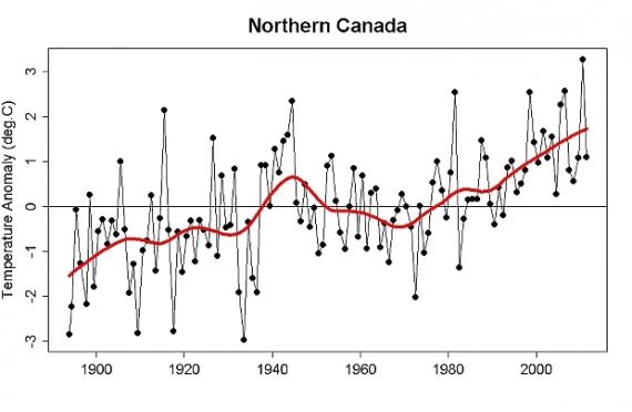 to, że obecnie w północnej Kanadzie jest znacznie cieplej, niż w latach ’30 i