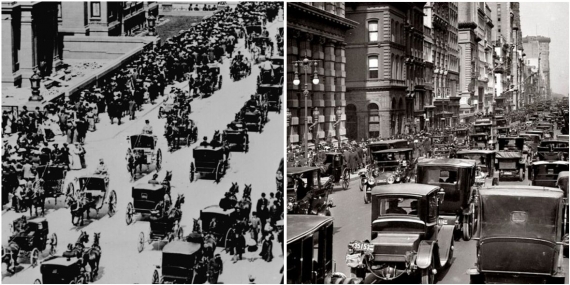 Ilustracja 2: Piąta Aleja (5th Avenue) w Nowym Jorku, po lewej w 1900 r., po prawej 13 lat później