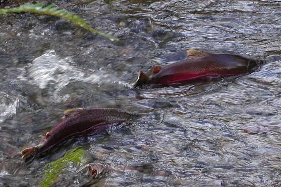 Rysunek 1. Łososie kiżucz w strumieniu w stanie Oregon. Wikipedia