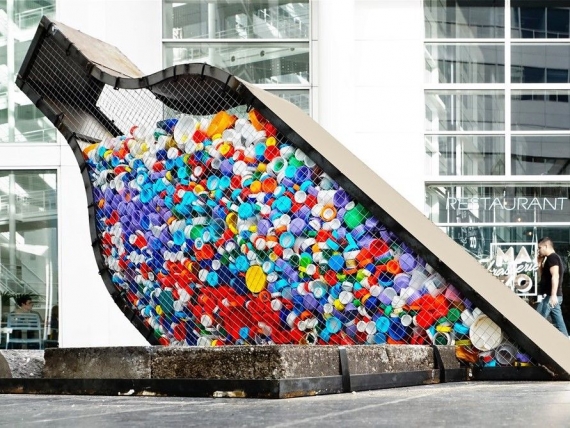 Rysunek 1: Instalacja artystyczna z wykorzystaniem plastikowych odpadów. Źródło: Roel Wijnants, Flickr.com, CC BY-NC 2.0.