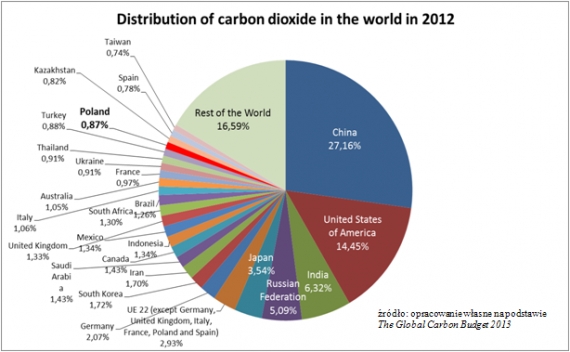 Warto zwrócić także uwagę na fakt, że wbrew często powtarzanej opinii, emisja CO2 przez Unię Europejską wcale nie jest bardzo mała, gdyż w 2012 r. wynosiła ona równe 10% produkcji światowej. Ponadto, rozkład wartości emitowanego CO2 wewnątrz UE jest bardzo nierównomierny. Faktycznie za około 70% wspólnotowych emisji odpowiada zaledwie 6 państw, w tym Polska plasująca się już na „zaszczytnym” piątym miejscu z wynikiem blisko 9%.