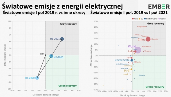Niepokoi nie tylko wzrost emisji, ale i fakt, że żaden kraj nie osiągnął po wybuchu pandemii prawdziwie „zielonej odbudowy” w sektorze energetycznym. Oznacza to, że nigdzie nie doszło do sytuacji, gdy choć zapotrzebowanie na energię elektryczną wzrosło, to emisje CO2 w sektorze zmalały.
