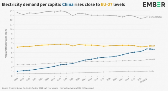 Raport Ember wyraźnie wskazuje, że Chiny muszą pilnie przyspieszyć transformację energetyczną. W kraju tym zapotrzebowanie na energię elektryczną wzrosło od pierwszej połowy 2019 r. o 14%, a poziom zużycia energii w przeliczeniu na mieszkańca zbliża się do tego, jaki jest w Unii Europejskiej.