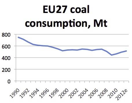 Co najważniejsze, trend wzrostowy jest najprawdopodobniej krótkoterminowy i zakończy się najpóźniej w 2015 roku. Przede wszystkim, w Europie prawie nie buduje się nowych elektrowni węglowych. Ze 112 zadeklarowanych do budowy po 2008 roku, plany budowy 73 zostały już zrzucone, a prace rozpoczęły się jedynie na trzech placach budowy.