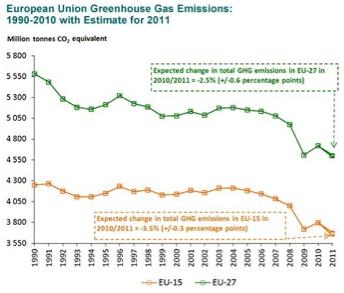 Kolejnym czynnikiem sprzyjającym w obecnej chwili produkcji prądu w elektrowniach węglowych, jest załamanie się cen uprawnień do emisji dwutlenku węgla (w ramach europejskiego systemu handlu emisjami ETS) w związku z rozdaniem zbyt wielu uprawnień do emisji połączonym z recesją europejskiej gospodarki i spadkiem emisji.