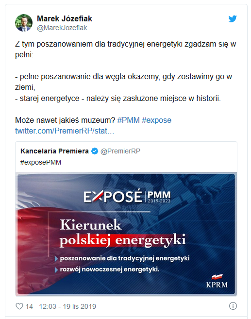 Premier podczas wygłoszonego przed południem expose zapowiadał miliardowe inwestycje w energetykę odnawialną i powołania rządowego pełnomocnika ds. OZE. Polskie władze nie porzucają jednak energetyki konwencjonalnej. W wystąpieniu szefa rządu zabrakło również deklaracji wyzerowania polskich emisji netto.