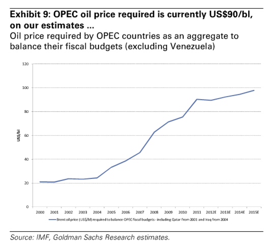 Kraje OPEC nadal utrzymują przewagę, co do kosztów produkcji w porównaniu do wyżej wymienionych producentów paliw. Jednak nawet kraje OPEC do zbilansowania swoich budżetów potrzebują cen ropy powyżej 90$/baryłkę. Do 2015 roku cena ta wzrośnie do 100$/b.