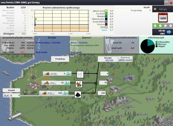 Możesz podejmować decyzje wpływające na gospodarkę, postawy społeczne, rolnictwo, infrastrukturę energetyczną, zanieczyszczenia itp. Cel jest prosty: ludzie mają być zadowoleni. Im lepiej zaspokajasz ich potrzeby i unikasz kryzysów, tym wyższy będzie Twój wynik.
