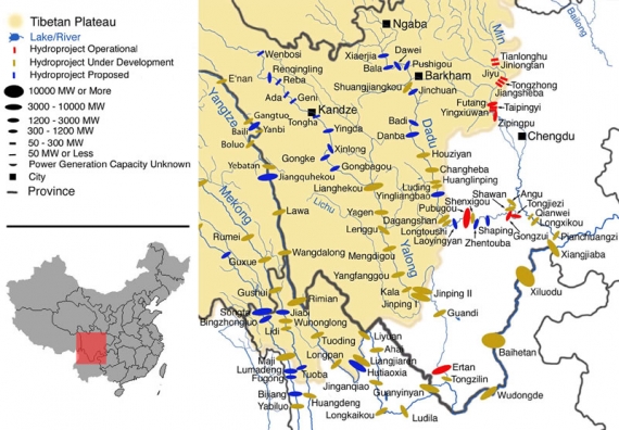 Na Jangcy i jej dopływach – Yalong, Dadu i Min w trakcie budowy jest około 100 zapór. Kolejne 24 zapory mają powstać na Mekongu (chiń. Lankang). Jeszcze większa ich liczba ma być wzniesiona na dwóch ostatnich wolno płynących rzekach Chin – Brahmaputrze (chiń. Yarlung) oraz Salween (chiń. Nu). Wszystkie te rzeki wypływają z Wyżyny Tybetańskiej, rejonie bardzo aktywnym sejsmicznie o średniej wysokości 4500 metrów. Spływając z dużej wysokości woda żłobi w miękkiej skale osadowej strome kaniony, wiele z nich głębszych od słynnego Kanionu Kolorado. Tereny te narażone są na niebezpieczeństwo trzęsień ziemi, co potwierdziły badania organizacji Probe International, według której niemal połowa nowych chińskich tam leży w strefie wysokiego i bardzo wysokiego ryzyka sejsmicznego.