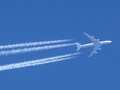A całkowite zużycie paliwa i emisja na trasie Londyn – Nowy Jork (5540 km)? Jeśli polecimy nowoczesnym Boeingiem 787-9 Dreamliner, dla którego zużycie paliwa mieści się w przedziale od 5.5 do 6 kg na km, dostaniemy emisję CO2 rzędu 90-100 ton. Jeśli zaś lecielibyśmy większym Boeingiem 747-8 (te samoloty ma w swojej flocie na przykład Lufthansa), całkowita ilość CO2 wyemitowana przez silniki samolotu byłaby prawie dwa razy większa.