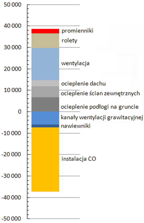 Rys. 1. Dodatkowe nakłady inwestycyjne w domu ADD (powyżej „0”) oraz oszczędności (poniżej „0”). Źródło.