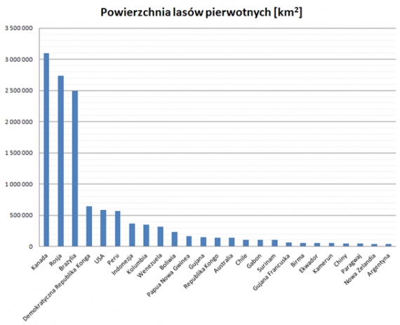 Rys. 2. Kraje, w których skupione jest 98% powierzchni wszystkich lasów uznawanych za dziewicze.
