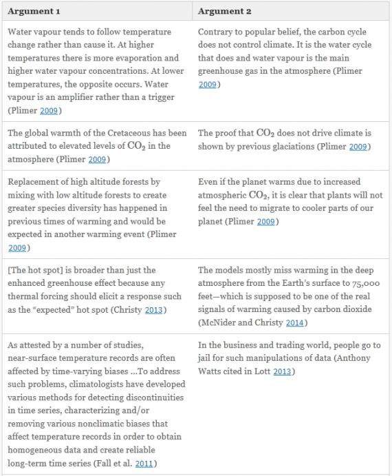 Nowy artykuł naukowy (Lewandowsky i in., 2016), opublikowany w magazynie Synthese, zawiera spojrzenie na wewnętrznie sprzeczne argumenty negujących antropogeniczną zmianę klimatu osób.