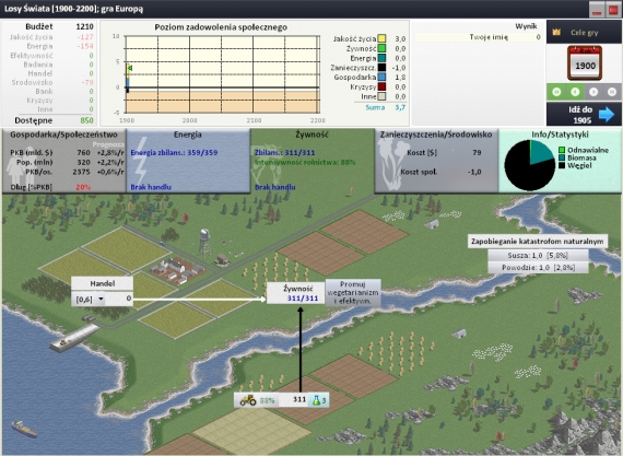 Możesz podejmować decyzje wpływające na gospodarkę, postawy społeczne, rolnictwo, infrastrukturę energetyczną, zanieczyszczenia itp. Cel jest prosty: ludzie mają być zadowoleni. Im lepiej zaspokajasz ich potrzeby i unikasz kryzysów, tym wyższy będzie Twój wynik.