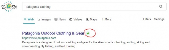 Dodatkowo wyszukiwanie pozwala podejmować bardziej świadome decyzje. Ecosia oznacza zarówno te firmy, które są przyjazne środowisku (np. Patagonia), jak i te, które przyczyniają się do jego niszczenia (np. Exxon Mobil).