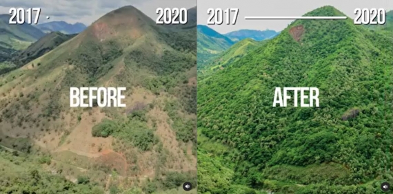 Foto: Zdjęcia “przed” i “po” z miejsca nasadzeń w ramach działań firmy Ecosia. Źródło: Ecosia.org
