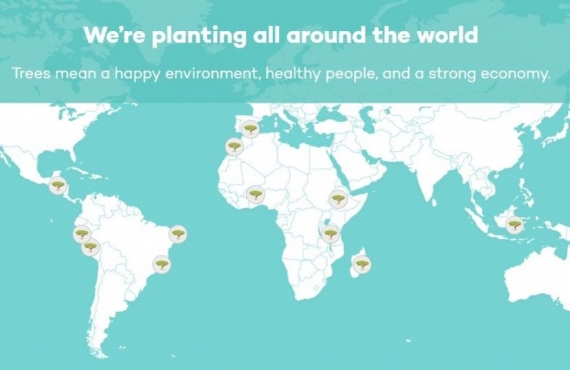 Ilustr. 2. Mapa ukazująca miejsca nasadzeń na całym świecie. Źródło: Ecosia.org