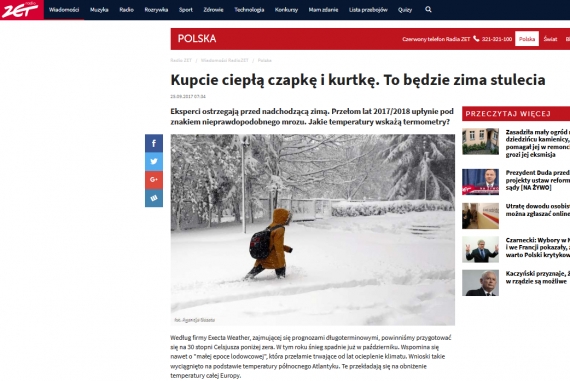 I nic to, że od kilku dni staramy się, jak możemy żeby przekazać informację na temat tego, że żaden poważny synoptyk zimy stulecia nie przewiduje. Oto budzi się w poniedziałek jakiś redaktor z Radia Zet i odkrywa informację sprzed pięciu dni, którą od razu musi się podzielić…