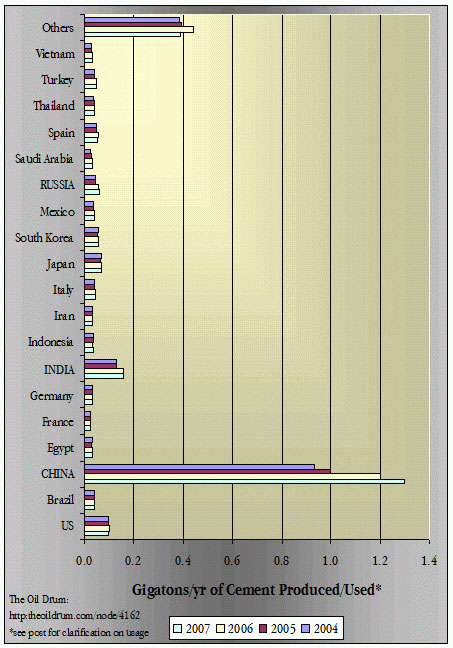 Rys. Produkcja/zużycie cementu w różnych krajach. Chińska gospodarka to nie tylko szybko rozwijająca się fabryka świata. To także największy na świecie plac budowy.