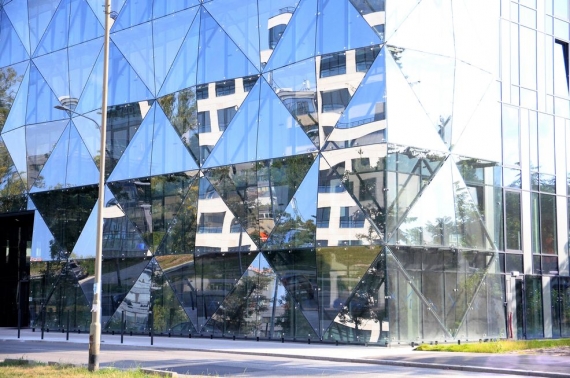 - unikanie dużych, monolitycznych, szklanych tafli,