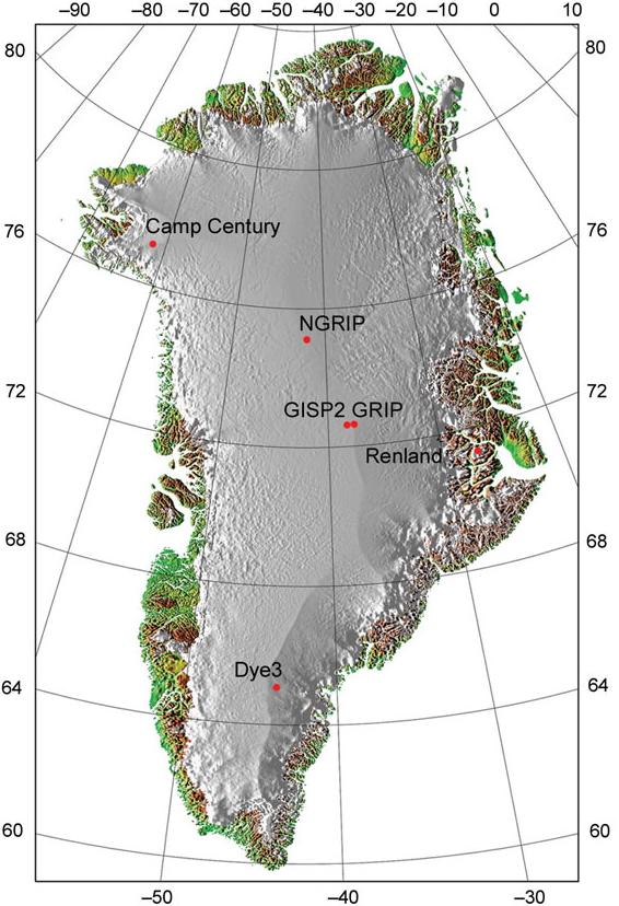 Grenlandzka pokrywa lodowa liczy sobie miliony lat (Lunt i inni 2008), a lód w istniejącej czapie lodowej ma ponad 100 tysięcy lat (Meese i inni 1997).