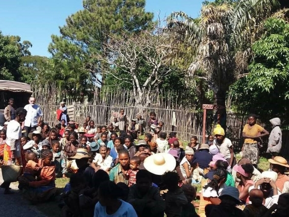 Ilustracja 1: Mieszkańcy Madagaskaru w oczekiwaniu na rozdanie posiłków. Źródło: MISEVI Polska.
