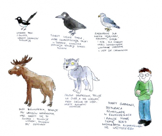 Przysłuchuję się dyskusjom na tematy dotyczące myślistwa, leśnictwa, ochrony gatunkowej. Padają argumenty o tym, że należy kontrolować liczebność pewnych gatunków, bo bez interwencji człowieka zbytnio się rozmnożą i będą niszczyć, już i tak zaburzoną, równowagę w ekosystemach. Rzeczywiście, bywa tak, że na tyle namieszaliśmy w przyrodzie, że teraz musimy podejmować pewne działania, żeby odwrócić czy zminimalizować skutki naszej działalności. Dobrym przykładem są gatunki inwazyjne: to organizmy, które człowiek (celowo bądź nie) sprowadził w dane miejsce z zupełnie innego zakątka świata, a one rozmnożyły się tam i zaczęły zagrażać istnieniu rodzimych gatunków. Tak było ze szczurami, które po zawleczeniu na wyspy, gdzie dotąd nie było naziemnych drapieżników, zaczęły zabijać nieprzygotowane na takie zagrożenie miejscowe gatunki ptaków i innych zwierząt. Tak jest z nawłocią kanadyjską, która znalazła świetne warunki na naszych łąkach i tworzy swego rodzaju monokultury, gdzie nie ma prócz niej żadnych innych roślin – a wraz z roślinami znikają związane z nimi gatunki owadów. Tępienie gatunków inwazyjnych, choć nie należy do przyjemnych zadań, jest często jedynym sposobem, żeby ochronić rodzime gatunki.