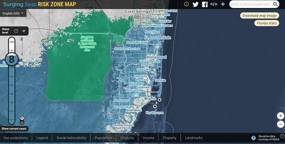 W Miami, które znajdzie się poniżej poziomu morza już przy wzroście temperatury o 2oC, poczucie pilności działań we władzach miejskich jest wyraźnie widoczne. Miejscy komisarze proszą wyborców o zatwierdzenie w listopadowym głosowaniu inwestycji „Miami Forever”, która obejmuje 400 mln dolarów na modernizację stacji pomp, rozbudowę systemów odwadniających, podnoszenie dróg i budowę wałów.