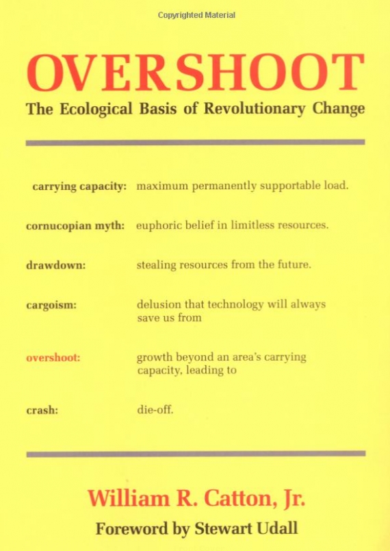 „Overshoot”, czyli „przekroczenie pojemności środowiska”. Ten niewinnie brzmiący tytuł książki zawiera w sobie niezwykłe spojrzenie na podstawy działania naszej cywilizacji. Na dwustu pięćdziesięciu stronach William R. Catton kreśli ostrzeżenie przed konsekwencjami nadmiernego korzystania ze środowiska naturalnego. Dzieło Cattona w prosty i konsekwentny sposób objaśnia, jak nasz gatunek zaadaptował się do nowych zasobów odnawialnych i kopalnych, jak zdominował swoje środowisko i zagarnął zasoby z przeszłości i przyszłości i dokąd prowadzi nas ta droga.