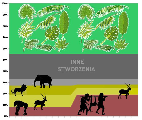 Rysunek 2. Podbój nisz środowiskowych zajmowanych przez inne organizmy był przez tysiąclecia głównym sposobem na zwiększenie zasobów dla naszego gatunku. Wykorzystanie narzędzi umożliwiło człowiekowi korzystanie z dodatkowych zasobów odnawialnych, z których korzystały wcześniej inne gatunki.