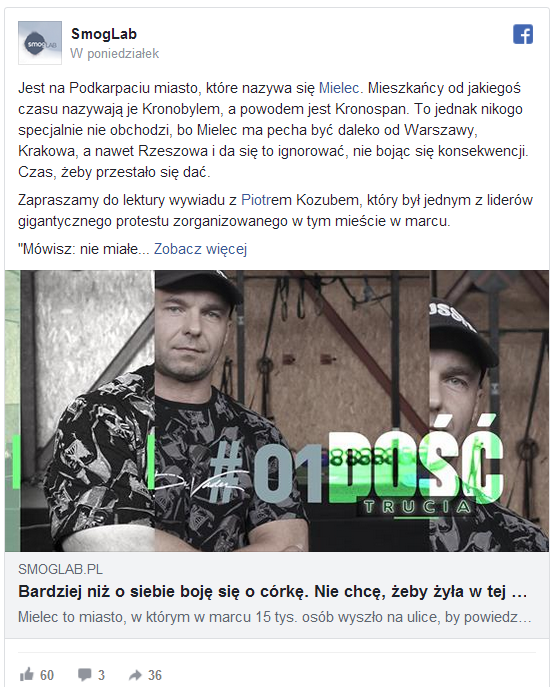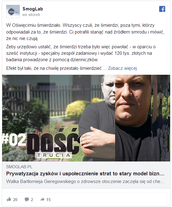 Nie mogę na to liczyć. Obserwując na Facebooku profile Mielca, Skawiny i innych miast gdzie są problemy, to wszędzie jest to samo. Ludzie są totalnie ignorowani, a nas uważa się za wariatów szukających sobie na siłę kłopotów. Nigdy nie zdarzyło się tak, że po zgłoszeniu sprawa nabrała własnego biegu i ktoś to za nas załatwiał. Często z urzędu miasta lub starostwa wysyłali pisma dalej do WIOŚ, a WIOŚ mówił, że nie ma ludzi i czasu i zmierzy to za rok lub dwa. Kiedy udało się wywalczyć ambulans pomiarowy, o którym miał nikt nie wiedzieć, to ustawili u sąsiadów samochód z wielkim napisem „ambulans pomiarowy”, który było widać z kilometra.