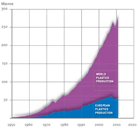 Rysunek 2. Światowa produkcja plastiku. Źródło. W 2013 roku produkcja sięgnęła 300 mln ton. Źródło.