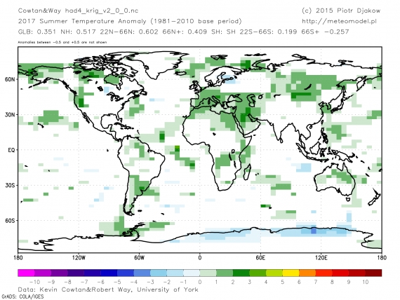 Dla porównania rzekomo chłodne ostatnie lato w Polsce globalnie wyglądało tak.