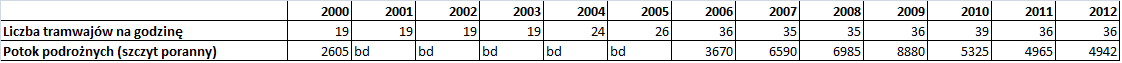Tabela 3. Ruch tramwajowy na Moście Gdańskim w godzinach szczytu porannego