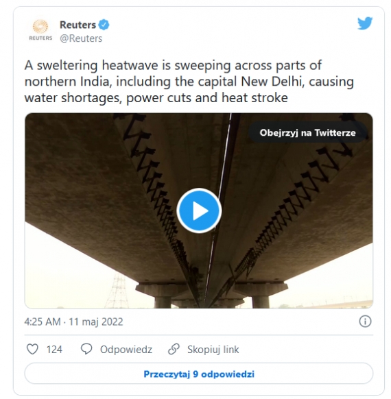 Upały w Indiach stały się na tyle poważne, że według tamtejszych lekarzy zaczynają być większym problemem niż pandemia koronawirusa. „Otrzymujemy wielu pacjentów, którzy doznali udaru cieplnego lub cierpią na inne problemy związane z upałem”, powiedziała Mona Desai z Indian Medical Association (organizacji zrzeszającej lekarzy) w stanie Gudżarat. Zwróciła też uwagę, że 60-70 proc. pacjentów, to wcale nie jak mogłoby się wydawać osoby w podeszłym wieku. Większość stanowią dzieci i młodzież, skarżące się na wymioty, biegunkę, kolkę brzuszną czy po prostu ogólne osłabienie organizmu. Do tego bardzo częstym problemem stały się przerwy w dostawie prądu. Przestarzała sieć i cała zresztą indyjska, jak pakistańska energetyka po prostu sobie z taką sytuacją nie radzi. A to tylko potęguje problem, bo ludzie są pozbawieni dostępu do wody i klimatyzacji. Na najnowszym nagraniu opublikowanym przez agencję Reuters widać, jak mieszkańcy New Delhi próbują skryć się w cieniu wiaduktu.