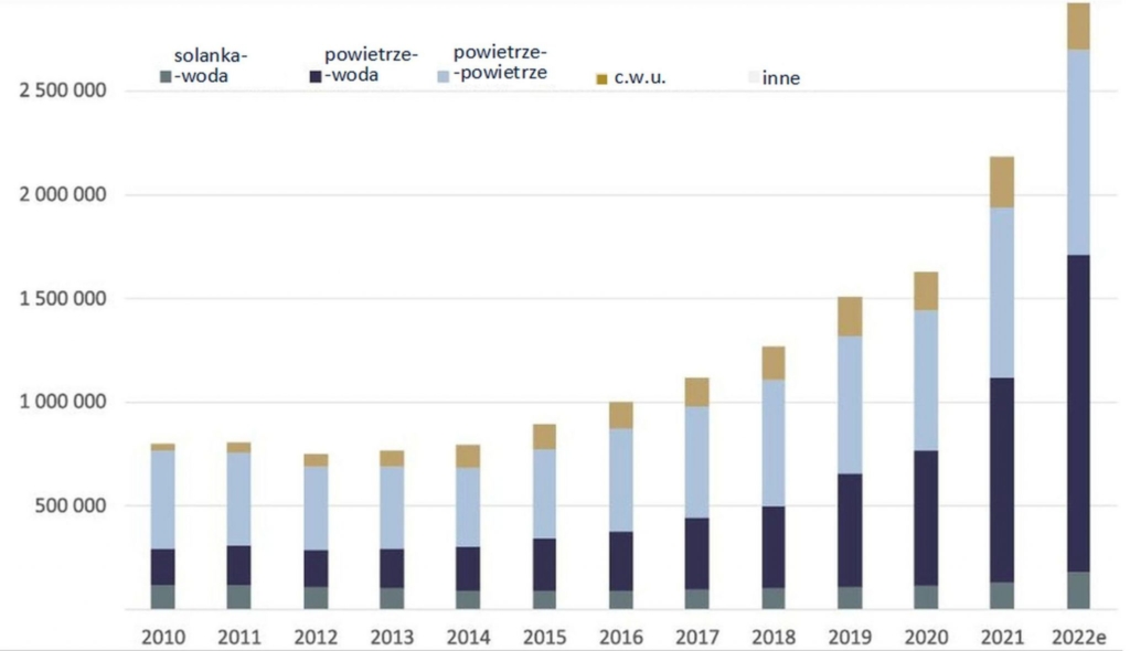 Wzrost sprzedaży w 2022 r. – liczba sprzedanych pomp ciepła ponad wartość sprzedaży w 2021 r. |