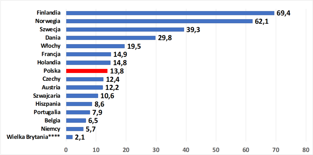 | Szwajcaria | 41 209 | +22% | + 7 505 |