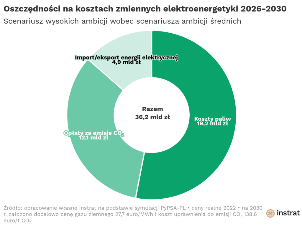 Według Instratu oszczędności związane z wdrażaniem ambitniejszej polityki wyniosą w latach 2026-2030 ok. 36.2 mld zł, a więc 1% PKB Polski z 2022 r.