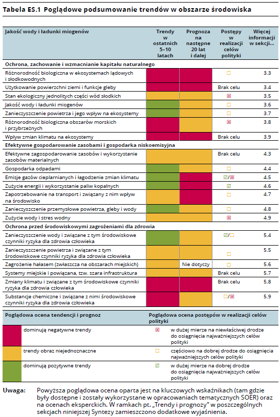 Na tym jednak dobre informacje się kończą. Okazuje się bowiem, że te pozytywne tendencje nie zmieniają w istotny sposób dramatycznej sytuacji, w jakiej znajduje się środowisko. Pomimo postępów poczynionych w ostatnich latach wiele problemów nadal występuje na dużą skalę w wielkościach bezwzględnych. Na przykład paliwa kopalne wciąż składają się na trzy czwarte dostaw energii w UE, powodując duże obciążenie ekosystemów, gdyż stosowanie tych paliw przyczynia się do zmiany klimatu, zakwaszenia i eutrofizacji.