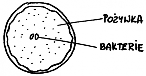 Potem chichocząc złowróżbnie, niczym stara czarownica, położył odrobinę pożywki na szalkę i przeniósł tam bakterie A i B.